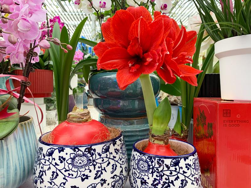 要說今年紅色花卉里最有新意的,要數(shù)朱頂紅了。朱頂紅名字里就帶著一個紅字,諧音“注定紅”更是寄托著人們對美好生活的向往。朱頂紅不只開紅花,也有嬌嫩欲滴的粉花、清新脫俗的白花,各種顏色的花朵不正寓意著燦爛的春天嗎?