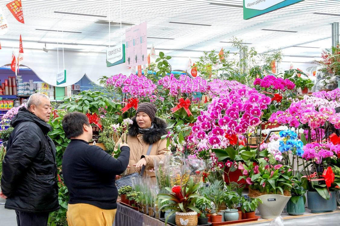 市民鐘女士和先生正在選購蝴蝶蘭,準備給自己家買兩盆,也送給老人家一盆。鐘女士表示,過年家里擺上花會增加喜慶氛圍,蝴蝶蘭漂亮、花期長,希望自己的蝴蝶蘭可以養(yǎng)到明年。