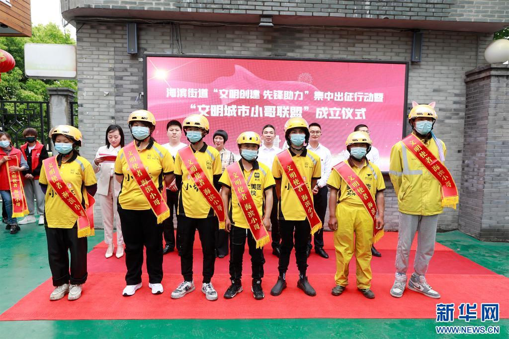 龍灣區(qū)成立“文明城市小哥聯(lián)盟”。新華網(wǎng)發(fā) 溫州市文明辦供圖