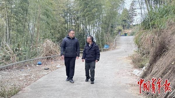1月8日,雙峰村駐村第一書記劉祥(左)和村支部書記陳家凱(右)去看望低收入農(nóng)戶。中青報·中青網(wǎng)見習(xí)記者 趙麗梅/攝