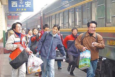 2004年,放假回家的大學(xué)生在西安火車(chē)站趕火車(chē)。焦宏濤攝(影像中國(guó))
