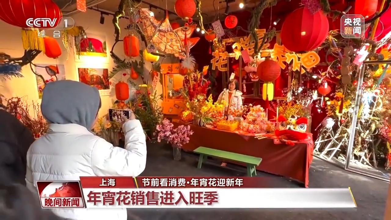 不少商家還在造型上下足了功夫,在鮮花上掛上“大吉大利”“平安喜樂”等祝福小卡片、精致小巧的紅燈籠、中國結(jié)等,寓意“把福抱回家”,深受消費(fèi)者歡迎。