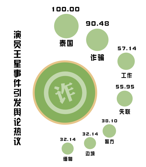 (制作:法治網(wǎng)輿情中心 數(shù)據(jù)來源:以“王星事件”為關(guān)鍵詞,選取小紅書相關(guān)帖文,對帖文內(nèi)容進行自然語言處理,進行分詞后將熱度最高的詞語規(guī)定為100)