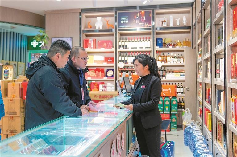 河南省漯河市郾城區(qū)紀委監(jiān)委緊盯關(guān)鍵節(jié)點,成立專項督導(dǎo)組深入轄區(qū)商超、酒店了解情況,嚴防節(jié)日“四風(fēng)”問題反彈回潮。圖為該區(qū)紀檢監(jiān)察干部在轄區(qū)商場了解相關(guān)情況。王曉 攝