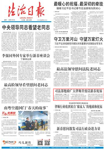 本報(bào)北京1月26日訊 記者趙婕 1月26日,司法部召開律師代表座談會(huì),聽取對(duì)律師工作的意見建議,向全國(guó)廣大律師致以新春祝福,勉勵(lì)大家深入踐行習(xí)近平法治思想,做黨和人民滿意的好律師。黨組書記、部長(zhǎng)賀榮,黨組成員、副部長(zhǎng)王振江出席會(huì)議。