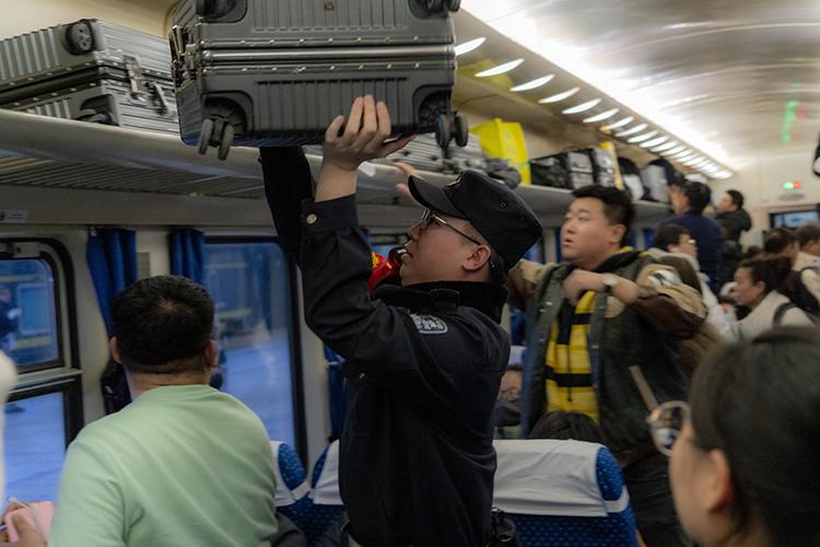 為了滿(mǎn)足大量旅客的出行需求,K27次列車(chē)特別增設(shè)至16節(jié)車(chē)廂,全車(chē)載有超過(guò)1000名旅客。沃荻從協(xié)助旅客托運(yùn)行李,到確保行李擺放整齊、安全;從白天維持車(chē)廂內(nèi)秩序,到夜間巡查提醒旅客保管好個(gè)人財(cái)物……旅途中的每一件小事,他都親力親為,從不馬虎。