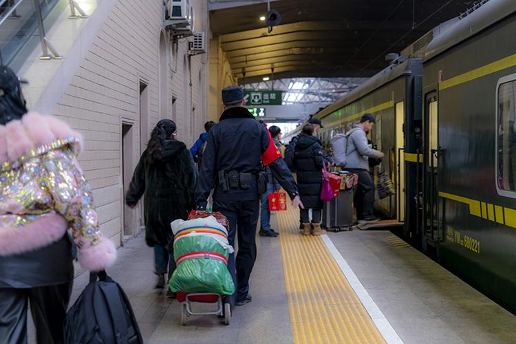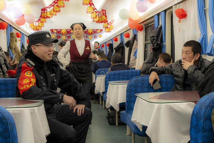 沃荻值乘的K27次列車(chē)從北京發(fā)往遼寧丹東,單次往返耗時(shí)兩天,他需要連續(xù)值乘兩個(gè)來(lái)回,共計(jì)4天。春運(yùn)期間,旅客數(shù)量激增,沃荻的工作量也隨之加大。“春運(yùn)期間旅客特別多,比平時(shí)要操心許多,我們的職責(zé)就是確保每一位旅客安全返鄉(xiāng)”。