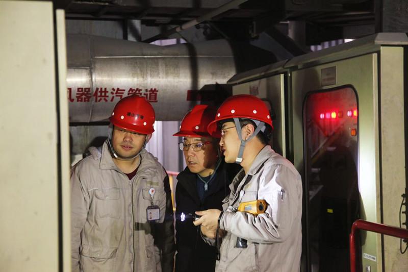 圖為記者(中)跟隨塔山發(fā)電公司員工進行巡檢。 本報通訊員 樊晶璟 攝