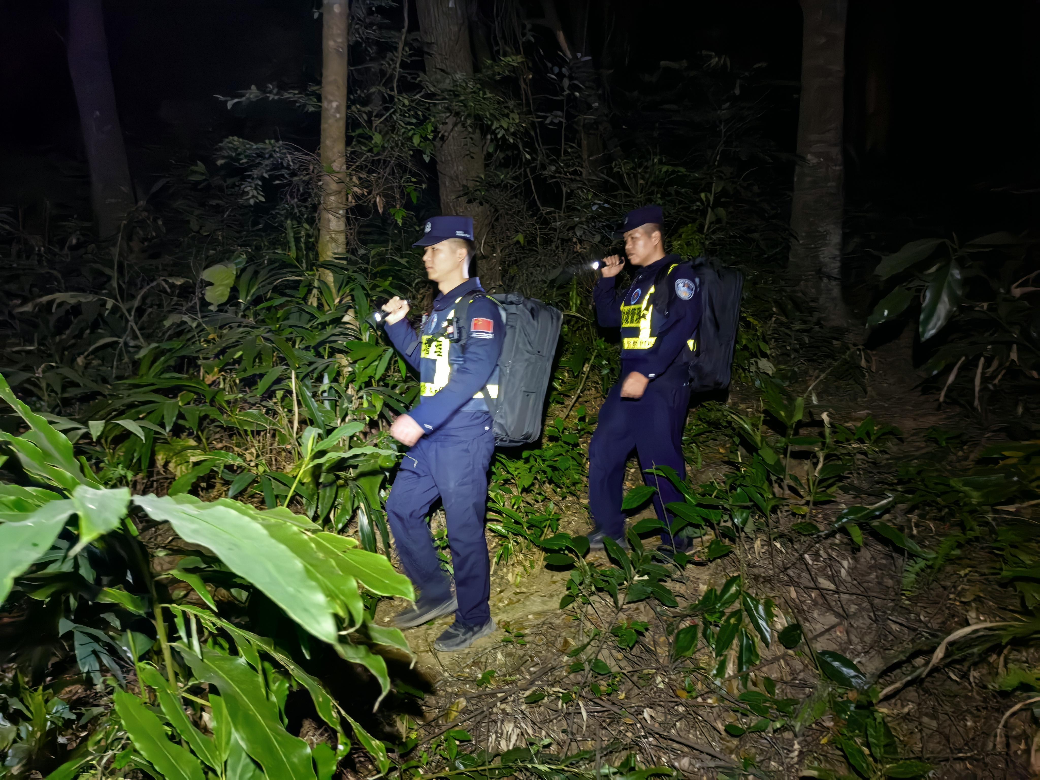 去年12月11日深夜,大青山警務(wù)室獲悉一條重要工作信息,一伙偷渡分子企圖從大青山附近偷渡出境。傅彬和同事莫璧成立即在重要路段設(shè)卡攔截,雖然發(fā)現(xiàn)目標(biāo)車輛但車內(nèi)并無(wú)其他人員。民警根據(jù)工作經(jīng)驗(yàn)判斷,該車可能已讓可疑人員下車離開(kāi)。隨即,莫璧成立即聯(lián)系護(hù)邊員、網(wǎng)格員等群眾力量對(duì)附近區(qū)域進(jìn)行搜索。