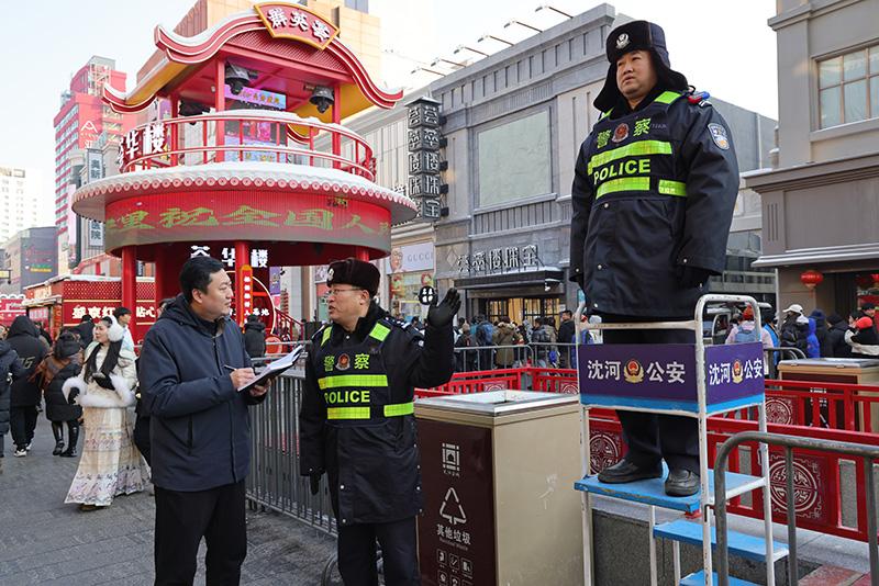 在中街知名的頭條胡同,一組由沈河公安分局統(tǒng)一部署的五里河派出所警力正維持秩序,五光十色的老字號小吃美食牌匾下,游人們安全有序地游中街、品美食,映射出沈城平安、和諧、幸福的歡度佳節(jié)景象。