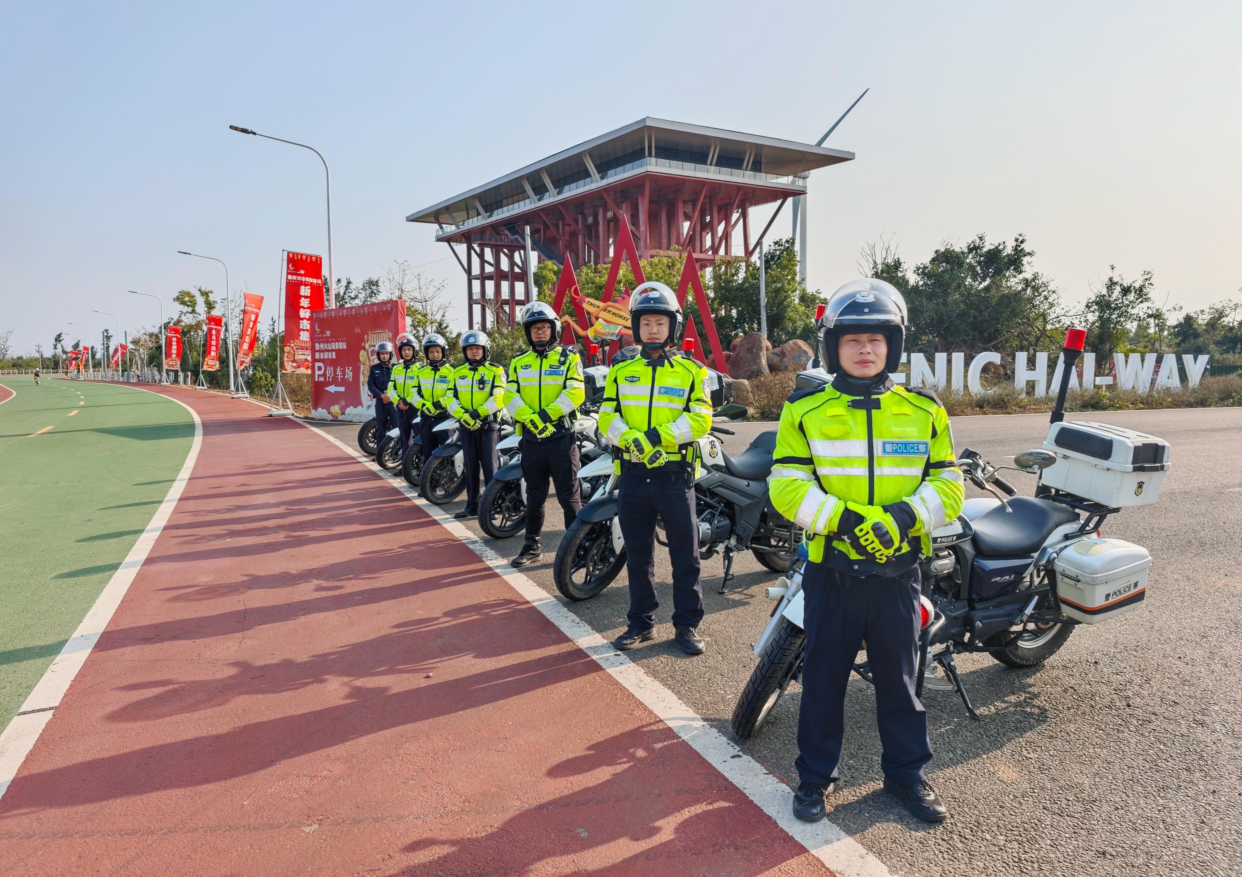 省公安廳反走私和管理總隊(duì)第七支隊(duì)警用摩托車隊(duì)員在旅游景點(diǎn)有序疏導(dǎo)交通