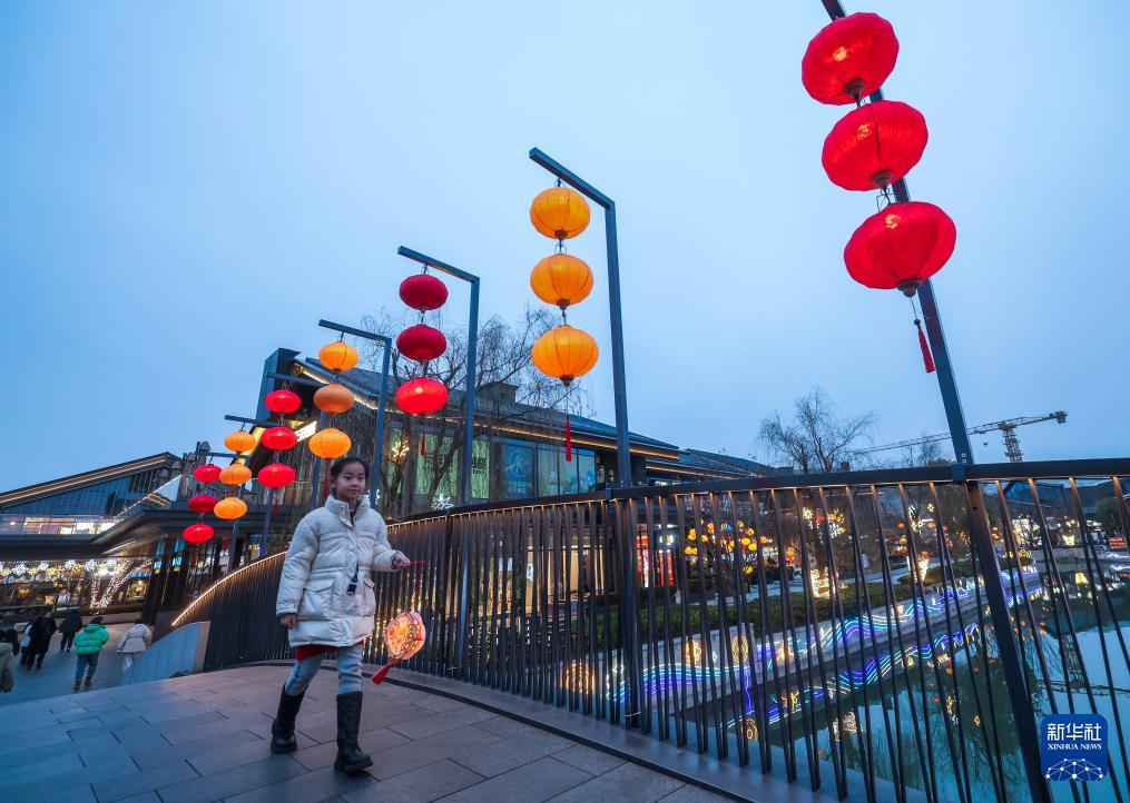 臨近元宵節(jié),浙江省嘉興市南湖區(qū)的街道社區(qū)、商業(yè)區(qū)塊、城市公園被各色花燈點亮,營造出濃濃的節(jié)日氣氛。