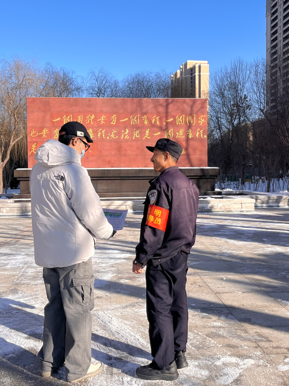 在公園的法治長(zhǎng)廊附近,記者見到了文明引導(dǎo)員姚隊(duì)。他身穿制服,手持對(duì)講機(jī),正在引導(dǎo)游客有序參觀。姚隊(duì)表示,文明引導(dǎo)員的任務(wù)就是維護(hù)公園秩序,確保游客安全、文明游園。姚隊(duì)還提到,文明引導(dǎo)員不僅是公共秩序的維護(hù)者,也是法治文化的傳播者?!拔覀儠?huì)提醒游客愛護(hù)公園設(shè)施,遵守公共秩序,這些都是法治精神的體現(xiàn)”。
