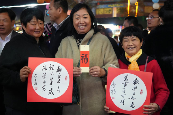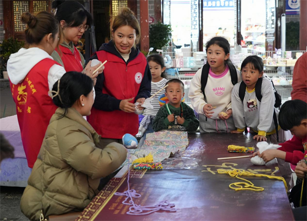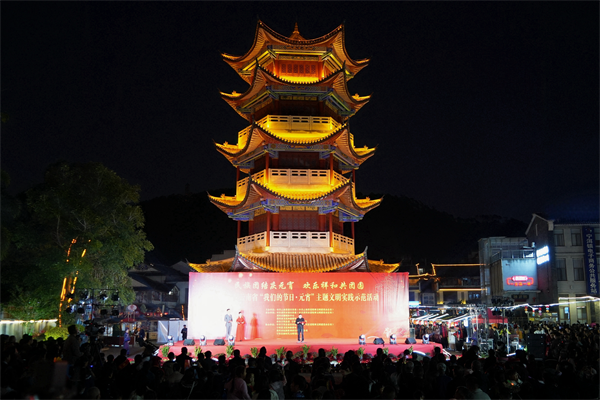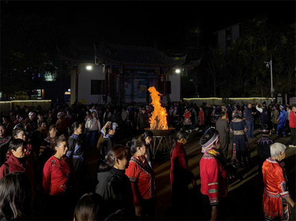 在普洱古鎮(zhèn),豐富多樣的文明實踐活動同步開展,書法愛好者以筆為媒,飽蘸深情,精心書寫并送上承載著“祝?!薄捌桨病薄敖】怠钡哪珜?。當社會主義核心價值觀、傳統(tǒng)文化以及移風(fēng)易俗理念巧妙融入謎面時,群眾穿梭于燈謎中,答得不亦樂乎。此外,燈籠制作、糖畫制作、烤茶、拓印、染紅蛋、舂粑粑等體驗環(huán)節(jié)吸引了不少群眾駐足?,F(xiàn)場,各族群眾身著盛裝,手拉手圍著篝火跳舞,歡聲笑語賀佳節(jié),描繪出中華民族一家親的美好畫面,營造歡樂祥和的節(jié)日氛圍。