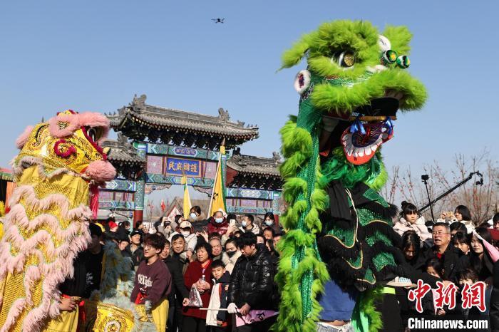 2月9日,河北省霸州市勝芳古鎮(zhèn)傳統(tǒng)花會(huì)巡游正式拉開帷幕。從農(nóng)歷正月十二到正月十六,50余道花會(huì)將輪番登場(chǎng)展示各自絕活,為當(dāng)?shù)厝罕姾陀慰瞳I(xiàn)上傳統(tǒng)文化盛宴。圖為2月9日,霸州市勝芳古鎮(zhèn)花會(huì)活動(dòng)中,獅子會(huì)表演現(xiàn)場(chǎng)。賈珺 攝