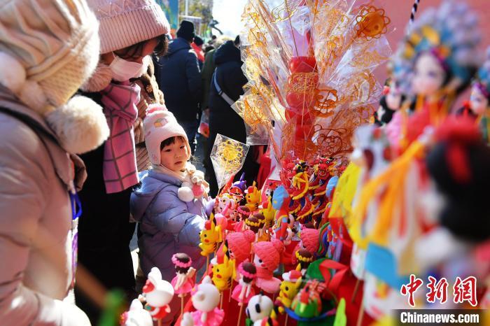 2月9日,民眾在攤位前了解手造作品。當(dāng)日,位于青島市市北區(qū)的2025年青島蘿卜·元宵·糖球會(huì)海云庵會(huì)場(chǎng)開街,豐富多彩的迎接元宵節(jié)活動(dòng)吸引大量民眾參與。蘿卜·元宵·糖球會(huì)擁有百年歷史,是當(dāng)?shù)刂匾拿袼谆顒?dòng)之一。王海濱 攝