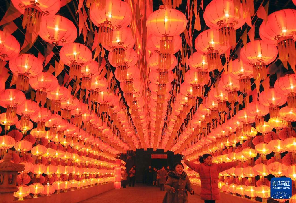 2008年2月20日,兩名小朋友在呼和浩特市五塔寺花燈走廊里面玩耍。 新華社記者 任軍川 攝