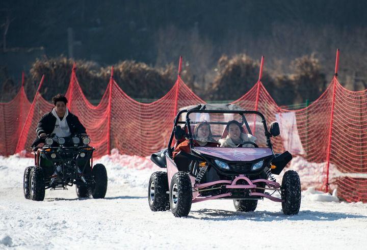 2025年1月19日,在河北省邯鄲市復(fù)興區(qū)東高河村滑雪場,游客在體驗(yàn)雪地越野車項(xiàng)目。新華社記者 王曉 攝