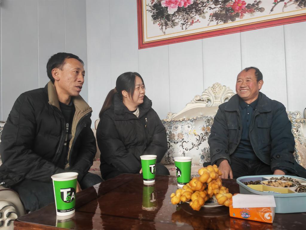 春節(jié)期間,白文英(左二)與趙永和(左一)在趙懷明(右一)家走訪(fǎng)。新華社記者 崔翰超 攝