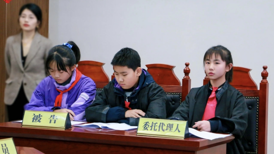 模擬法庭環(huán)節(jié),在“小法官”的主持下,“原告”“被告”雙方圍繞案件事實(shí)及爭(zhēng)議焦點(diǎn)開(kāi)展了舉證質(zhì)證、相互發(fā)問(wèn)、法庭辯論等,整個(gè)庭審過(guò)程莊重嚴(yán)肅、秩序井然,旁聽(tīng)人員神情專(zhuān)注、認(rèn)真聆聽(tīng),小朋友們“沉浸式”參與了庭審全過(guò)程。在互動(dòng)環(huán)節(jié)中,孩子們積極發(fā)言,踴躍分享了自己的感悟與收獲,還提出許多與日常生活緊密相關(guān)的法律問(wèn)題。