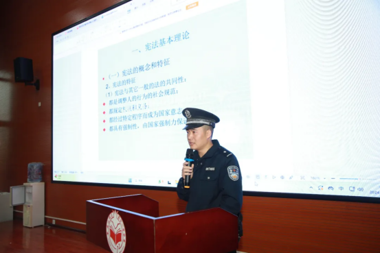 在觀山湖區(qū)第十一中學(xué),云潭派出所社區(qū)民警陳向以“傳承憲法文化、弘揚法治精神”為主題,通過講解PPT、播放憲法宣傳公益廣告等方式,生動形象地為學(xué)生們講授了憲法的基本概念、國家憲法日的來源等方面的知識。