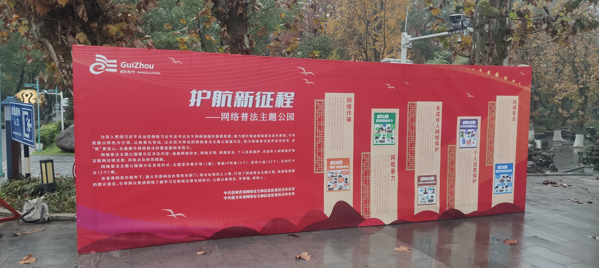 遵義市委網(wǎng)信辦依托遵義紀念公園打造網(wǎng)絡普法主題公園,展示涵蓋網(wǎng)絡安全、網(wǎng)絡文明、網(wǎng)絡詐騙、網(wǎng)絡沉迷、數(shù)據(jù)安全、個人信息保護、未成年人網(wǎng)絡保護等互聯(lián)網(wǎng)法律法規(guī),以主題宣傳展示墻、漫畫IP形象、宣傳小品及互動打卡點等形式進行普法宣傳。