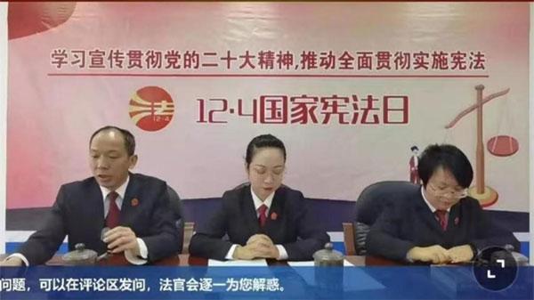 直播互動,深入服務(wù)群眾。為充分發(fā)揮新媒體傳播快、關(guān)注度高、互動性好的特點(diǎn),黔南中院在新媒體平臺進(jìn)行庭審直播,讓群眾在觀看直播中學(xué)習(xí)法律知識,截至目前,通過直播庭審方式普法已達(dá)4億人次;連續(xù)兩年,在國家憲法日宣傳中,邀請法官走進(jìn)直播間釋法、解答群眾法律咨詢,近20萬人次在線觀看。