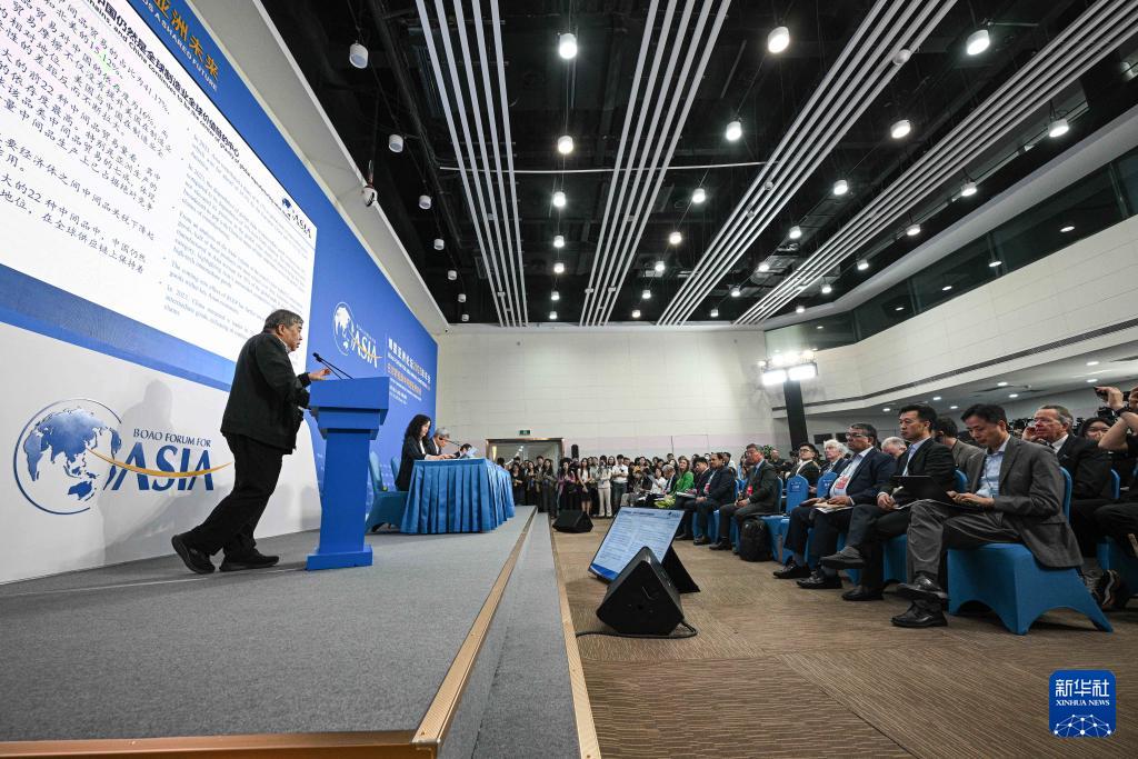 3月25日在海南博鰲拍攝的博鰲亞洲論壇2025年年會新聞發(fā)布會暨旗艦報告發(fā)布會現(xiàn)場。