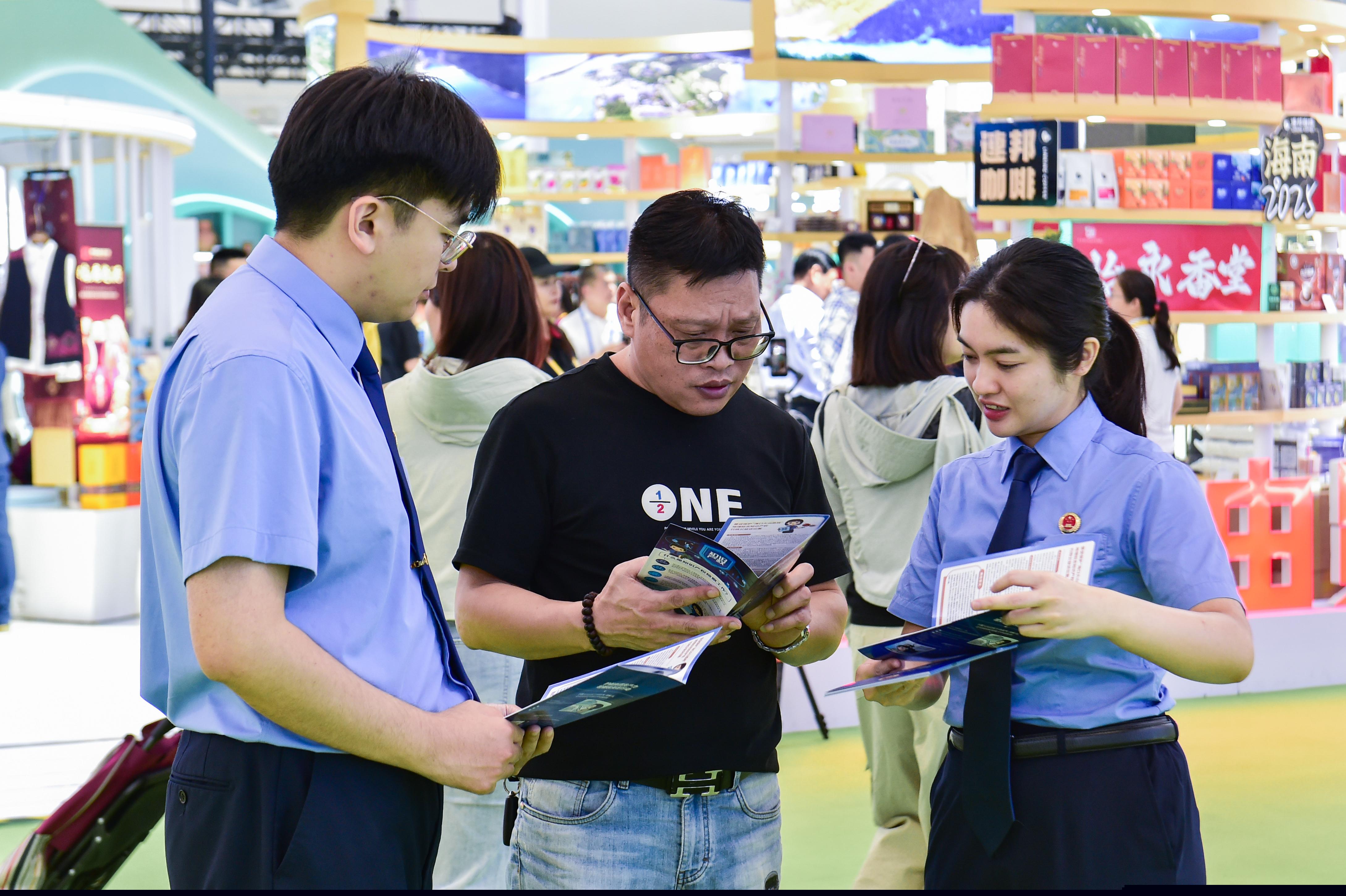 圖為4月15日,海南省檢察機(jī)關(guān)干警走訪參展商和觀展群眾