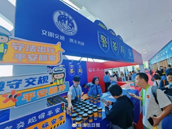 在第五屆中國國際消費品博覽會上,海南??诰降摹熬琛帧惫嫘麄髡箙^(qū)格外引人注目。在現(xiàn)場,只要參與交通安全知識問答、禁毒知識問答等普法活動,就可品嘗到印有文明交通標(biāo)語的免費茶飲,收獲交警小熊、??诮竟械榷Y品,不少國內(nèi)外參展客商、市民游客融入其中,現(xiàn)場氛圍十分活躍。除此之外,現(xiàn)場還可觀摩仿真毒品模型、與民警面對面交流,深入了解法律知識,提高安全防范意識。創(chuàng)新宣傳,寓教于樂,這場盛會也因警方這樣的貼心守護更顯生動。