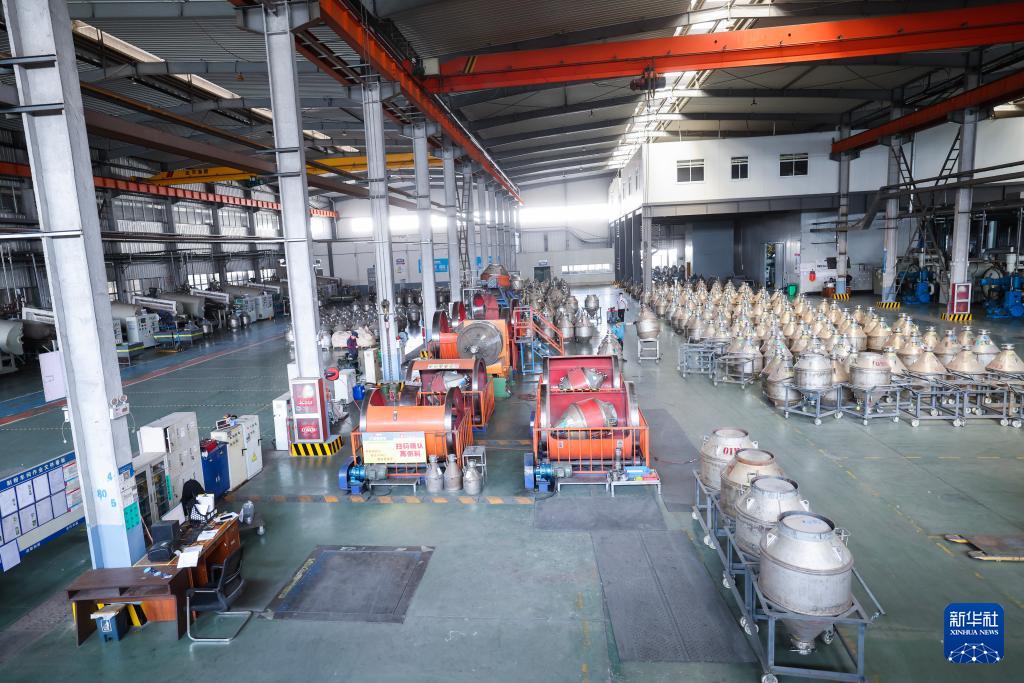 4月9日,在位于慈溪的國(guó)家專精特新“小巨人”企業(yè)寧波金輪磁材技術(shù)有限公司數(shù)字化車間內(nèi),工人在生產(chǎn)線上生產(chǎn)永磁材料。