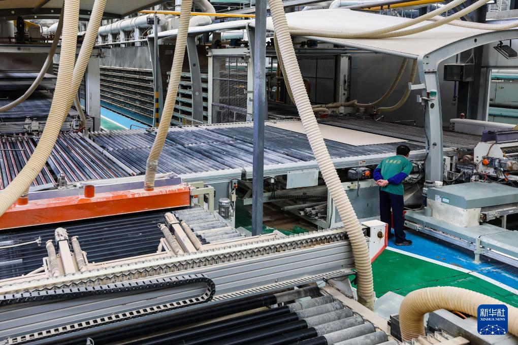 4月22日,工人在佛山蒙娜麗莎大尺寸陶瓷巖板自動生產(chǎn)線值守。