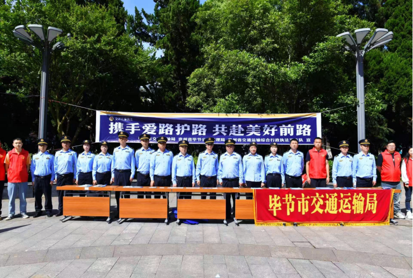 為持續(xù)強(qiáng)化公路路政管理工作,凝聚推動(dòng)公路交通高質(zhì)量發(fā)展的強(qiáng)大合力,貴州省畢節(jié)市交通運(yùn)輸局精心謀劃、周密部署,扎實(shí)開(kāi)展2025年“路政宣傳月”系列活動(dòng)。5月26日,畢節(jié)市交通運(yùn)輸局聯(lián)合貴州省交通運(yùn)輸綜合行政執(zhí)法五支隊(duì)、畢節(jié)市公路管理局、七星關(guān)區(qū)交通運(yùn)輸局,在畢節(jié)市人民公園隆重舉行以“攜手愛(ài)路護(hù)路,共赴美好前路”為主題的集中宣傳日活動(dòng)。