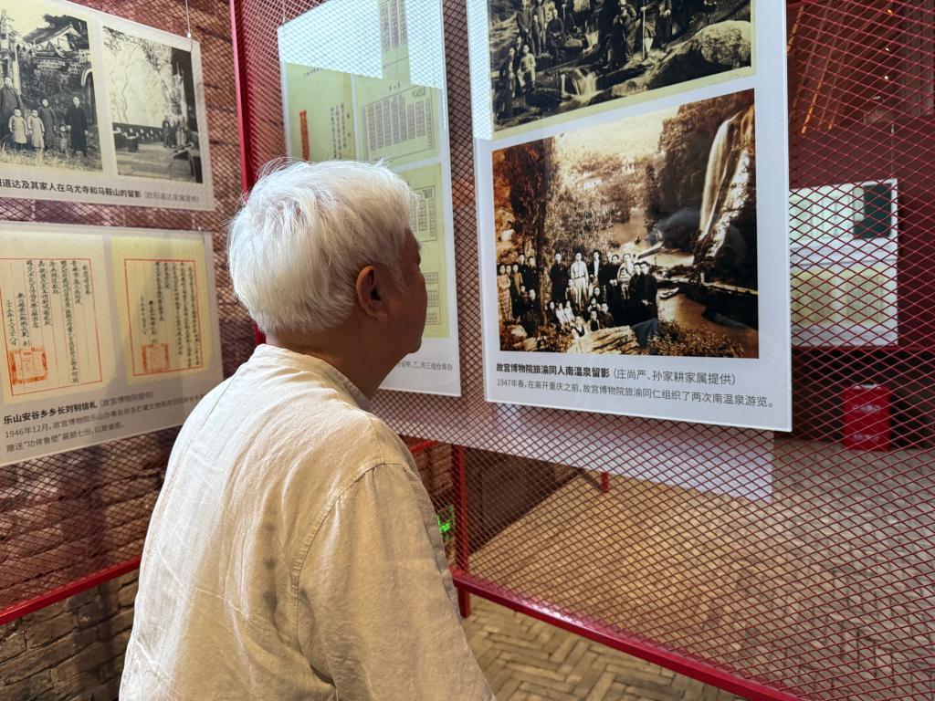胡昌健駐足觀看重慶故宮文物南遷紀(jì)念館里的一張老照片。新華社記者 趙佳樂 攝