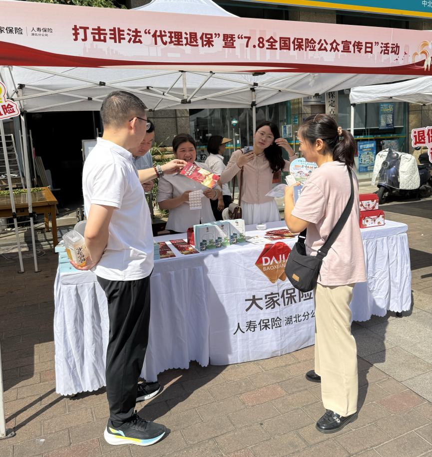 7月5日,在2025年“7.8全國保險(xiǎn)公眾宣傳日”來臨之際,大家人壽湖北分公司與武漢市12家金融機(jī)構(gòu)一道,冒著酷暑走進(jìn)武昌區(qū)復(fù)地東湖國際武重社區(qū),積極參加由國家金融監(jiān)督管理總局湖北監(jiān)管局領(lǐng)導(dǎo)、湖北省保險(xiǎn)行業(yè)協(xié)會指導(dǎo)、極目新聞主辦的“向非法代理退保說不,我們在行動”宣傳活動。本次活動以打擊非法“代理退?!濒摺?.8全國保險(xiǎn)公眾宣傳日”為主題,吸引了眾多社區(qū)居民參與,以豐富多元的形式掀起社區(qū)公眾反詐防騙熱潮。