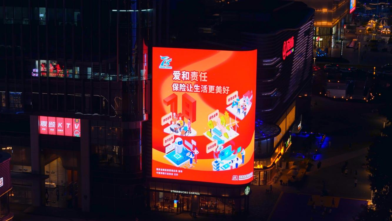 7月5日至8日,河南省保險行業(yè)協(xié)會精心策劃了一場別開生面的點亮地標(biāo)主題宣傳活動,將歷史與現(xiàn)代完美融合,全方位展示保險行業(yè)的時代風(fēng)貌與責(zé)任擔(dān)當(dāng)。分別點亮歷史性地標(biāo)鄭州市二七紀(jì)念塔旁友誼大廈大屏和新潮流地標(biāo)鄭州市花園路萬達坊光影雙幕大屏。每天平均200次滾動播放“7.8全國保險公眾宣傳日”主題海報,讓“愛和責(zé)任 保險讓生活更美好”傳遞至千家萬戶。