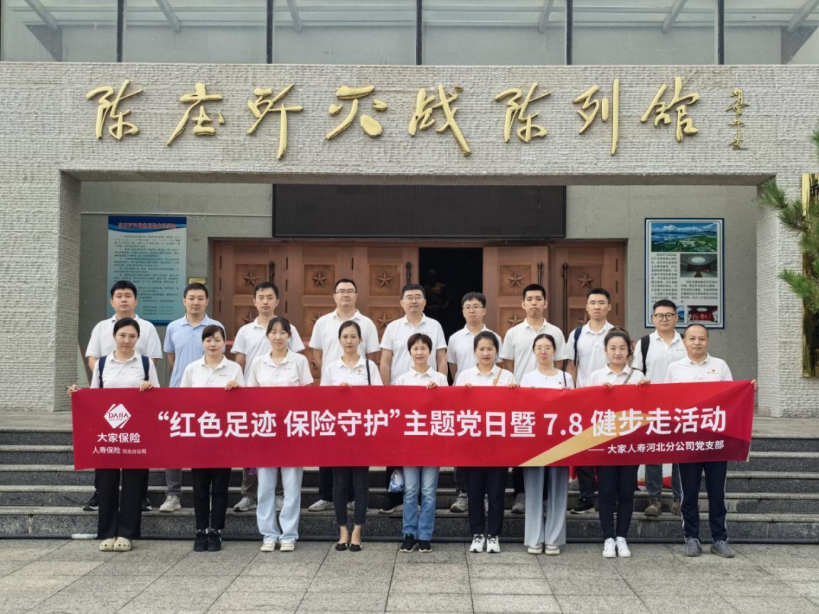 7月10日,大家人壽河北分公司黨支部組織本級及石家莊中支黨員、入黨積極分子,赴靈壽縣陳莊殲滅戰(zhàn)陳列館開展“紅色足跡 保險(xiǎn)守護(hù)”主題黨日暨7.8健步走活動,慶祝建黨104周年和抗戰(zhàn)勝利80周年,落實(shí)“7.8全國保險(xiǎn)公眾宣傳日”活動要求。