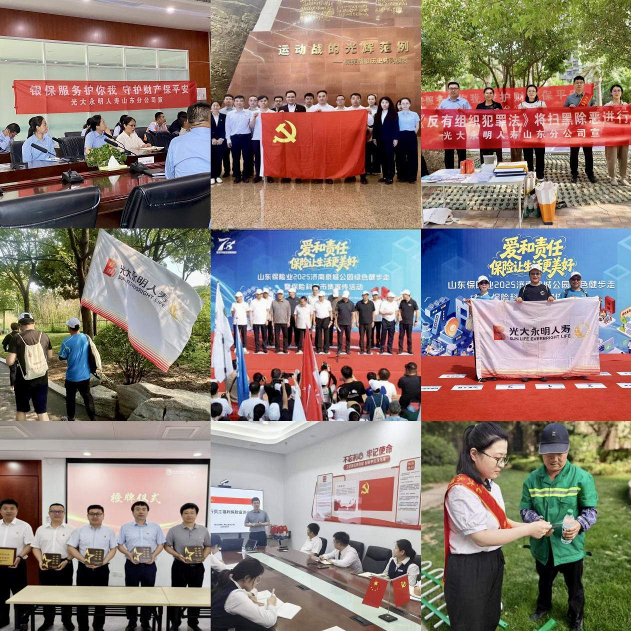 在“7.8全國保險(xiǎn)公眾宣傳日”活動(dòng)期間,光大永明人壽山東分公司以“愛和責(zé)任 保險(xiǎn)讓生活更美好”主題為支點(diǎn),在國家金融監(jiān)督管理總局山東監(jiān)管局和山東省保險(xiǎn)行業(yè)協(xié)會(huì)部署指導(dǎo)下,總分聯(lián)動(dòng)、渠道協(xié)同,開展了紅色教育、金融知識宣教、理賠服務(wù)宣傳和參與綠色健步走等系列活動(dòng),凝聚力量,傳遞愛心,折射責(zé)任之光。