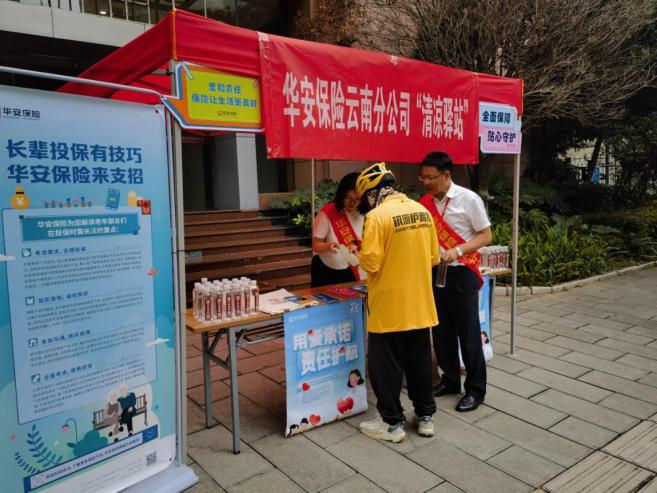 在昆明,華安保險(xiǎn)云南分公司積極開展保險(xiǎn)知識“進(jìn)社區(qū)”活動(dòng),在公司所在社區(qū)設(shè)立保險(xiǎn)“清涼驛站”,為社區(qū)群眾、新市民群體贈送瓶裝水和防暑降溫用品,并有針對性地開展保險(xiǎn)知識宣傳和風(fēng)險(xiǎn)提示,幫助消費(fèi)者了解保險(xiǎn)銷售業(yè)務(wù)常見的風(fēng)險(xiǎn)點(diǎn)和易受誤導(dǎo)的環(huán)節(jié),客觀認(rèn)知、準(zhǔn)確理解保險(xiǎn)功能作用。