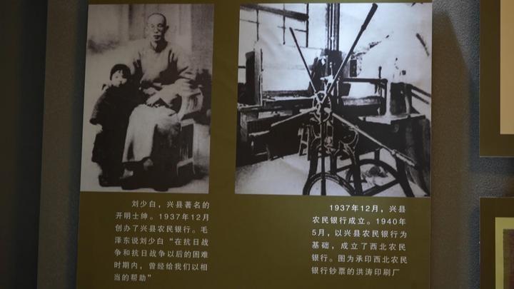 講解員張英告訴記者,為了更貼近百姓,與閻錫山的晉鈔區(qū)分開來,所以取名叫興縣農民銀行。“在(興縣)農民銀行的基礎上,我們又成立了西北農民銀行。西北農民銀行當時的主要工作就是印鈔。我們看到的這個就是當時建立的洪濤印刷廠,當時洪濤印刷廠的工作也非常多,從1940年成立到1949年1月,一共印的鈔票價值是3.8億元。1940年5月10日,我們在興縣孫家大院舉辦了開業(yè)大禮,從此西北農民銀行誕生,之后在1948年12月份,西北農民銀行、華北銀行、北海銀行合并,組建了中國人民銀行,至此,西北農民銀行完成了它的歷史使命?!彼f。