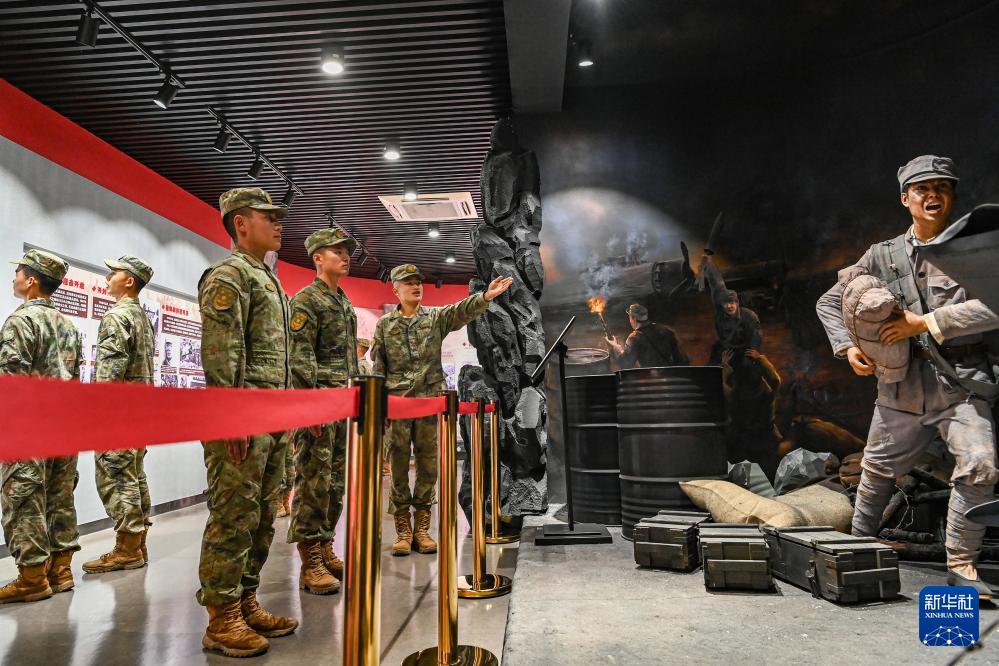 陸軍第73集團(tuán)軍某旅夜襲陽明堡“戰(zhàn)斗模范連”戰(zhàn)士在連史館學(xué)習(xí)連隊歷史 (2023年12月2日攝)。新華社發(fā)(劉志勇攝)