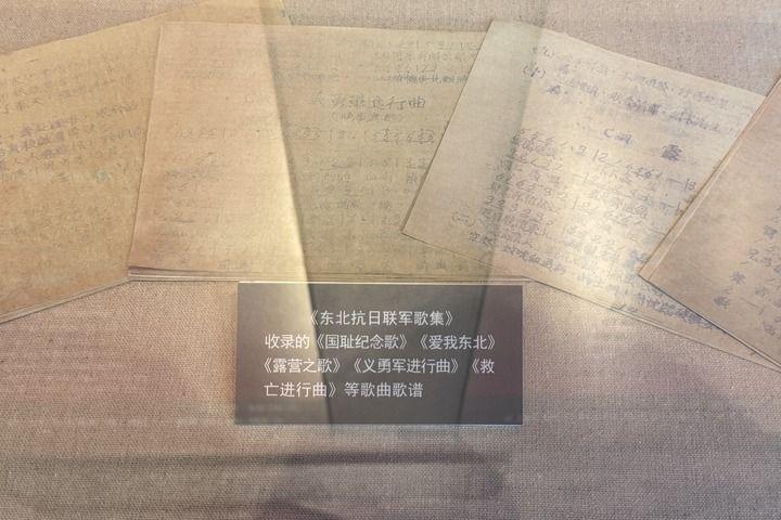 這是東北烈士紀念館展出《東北抗日聯(lián)軍歌集》中分歌曲的歌譜。新華社記者 沈易瑾 攝