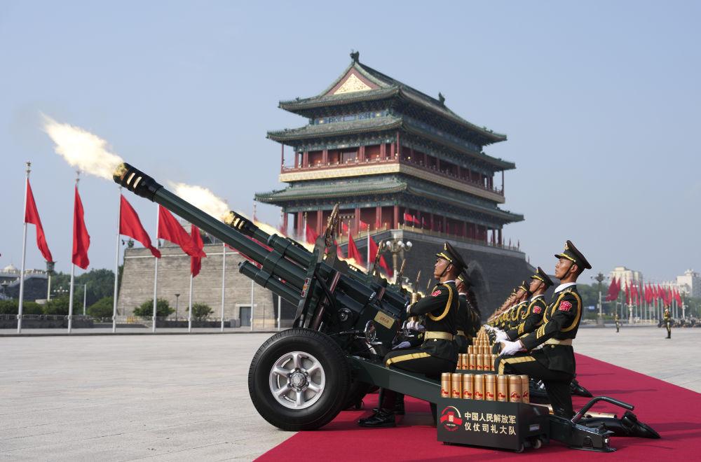 2025年9月3日,紀(jì)念中國(guó)人民抗日戰(zhàn)爭(zhēng)暨世界反法西斯戰(zhàn)爭(zhēng)勝利80周年大會(huì)在北京隆重舉行。這是禮炮在天安門廣場(chǎng)鳴響。新華社記者 牟宇 攝