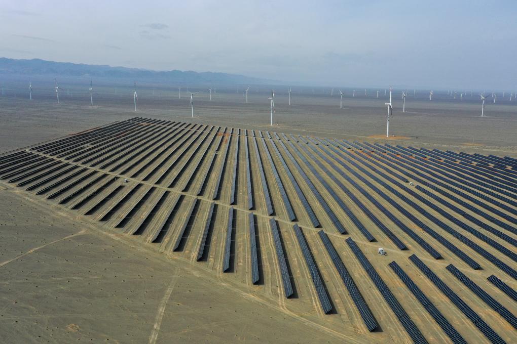 一望無垠的新疆戈壁上,逾百米高風(fēng)機(jī)的葉片緩緩轉(zhuǎn)動,連綿的光伏板在陽光下“漾”起粼粼光紋,超低排放的火電機(jī)組平穩(wěn)運(yùn)轉(zhuǎn),與風(fēng)光能源協(xié)同運(yùn)行。