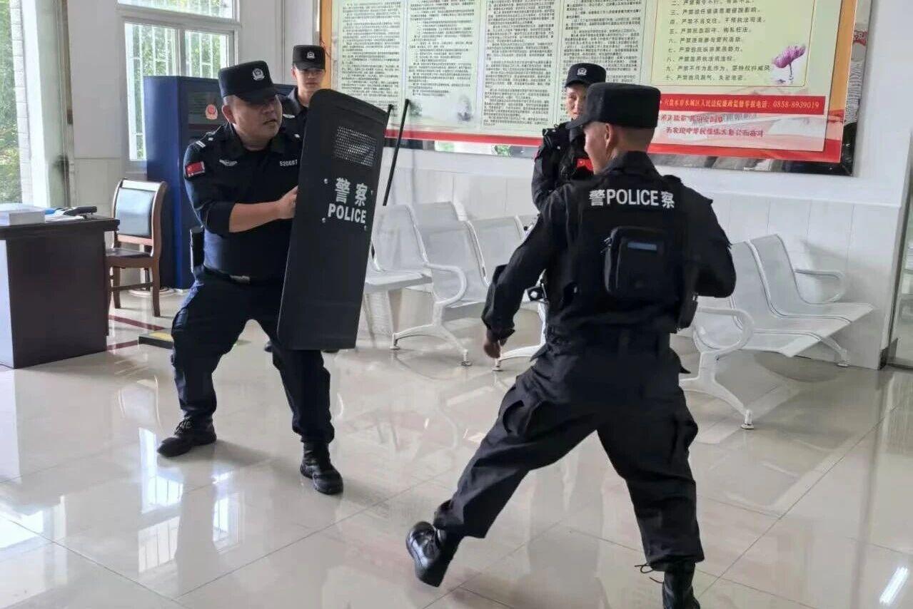 圖為水城法院組織法庭干警開展應(yīng)急處突演練。