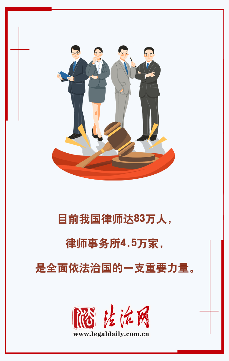 目前,我國(guó)律師達(dá)83萬人,律師事務(wù)所4.5萬家,是全面依法治國(guó)的一支重要力量?!笆奈濉逼陂g,司法部在引導(dǎo)好、管理好、服務(wù)好律師隊(duì)伍上持續(xù)采取務(wù)實(shí)措施,團(tuán)結(jié)凝聚廣大律師充分發(fā)揮職能作用。律師工作哪些亮點(diǎn)不容錯(cuò)過?一圖解鎖!