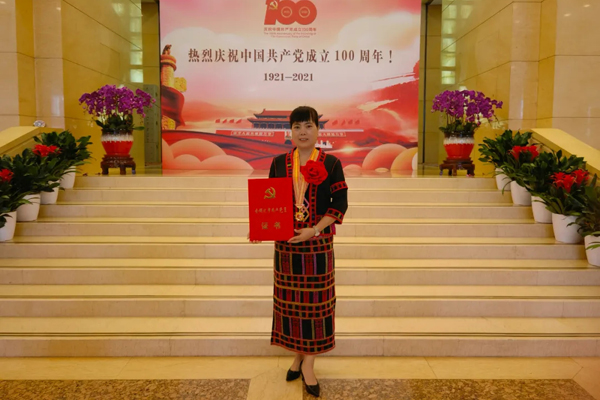 今年“七一”前夕,符小琴獲得“全國優(yōu)秀共產(chǎn)黨員”榮譽(yù)稱號,在北京接受表彰。(代表供圖)