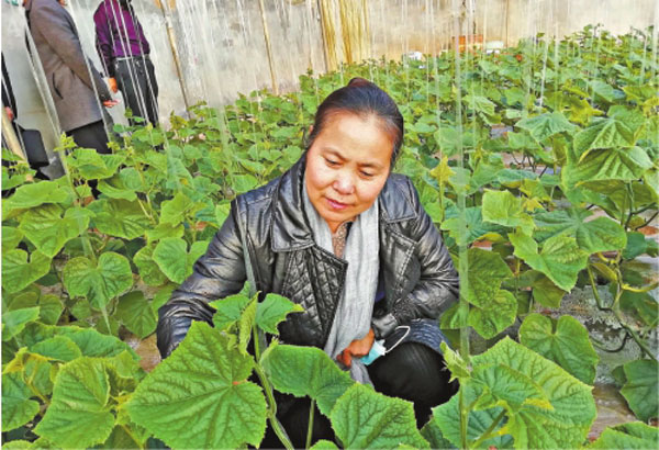 于安玲在大棚里觀察作物苗期試驗(yàn)