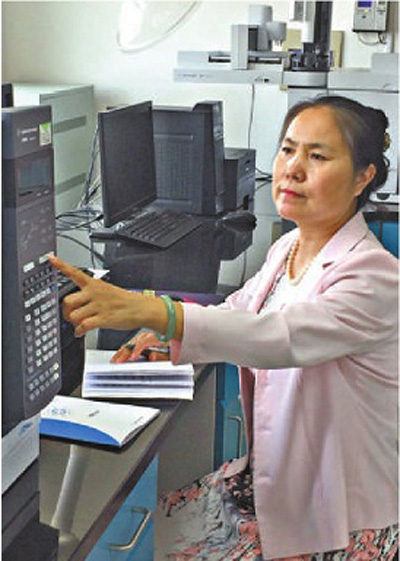 于安玲在實(shí)驗(yàn)室里作技術(shù)檢測