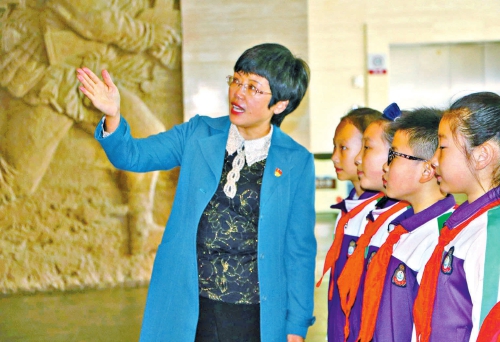 張淑琴在沂蒙革命紀(jì)念館為學(xué)生講述沂蒙紅嫂擁軍支前的感人事跡